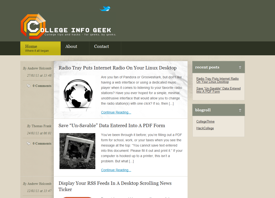 That led me to read every college prep book in my city’s library, and to reading tons of productivity blogs as a freshman. One of those blogs, HackCollege, put out a call for new writers near the end of my freshman year. I applied to write for their team, but I was rejected – so I decided to take the article I’d written as part of my application and build my blog, College Info Geek.
